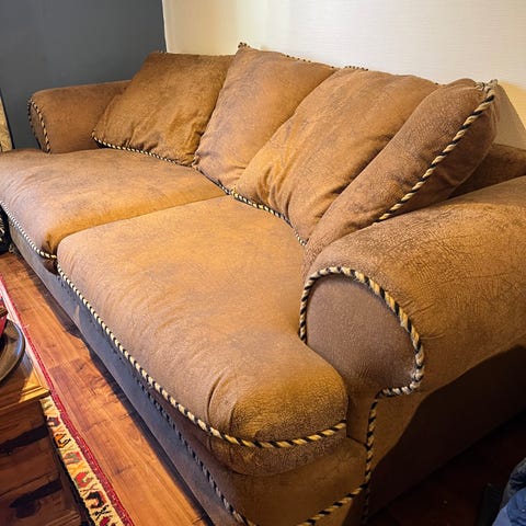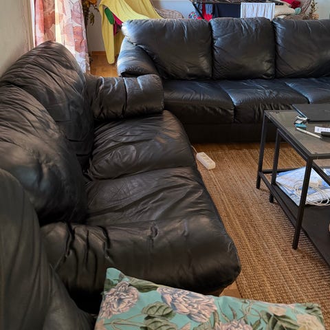 Sjekker interessen for disse møblene, da vi skal flytte. Skinnsofa toseter, stol og puff. Puffen er ikke med på bilde, men jeg kan prøve å få tatt bilde ila uken 😊