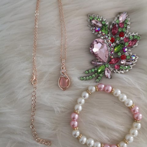 Nytt/ubrukt sort og gullfarget armbånd og sort og gullfarget smykke med små glitrende stener selges samlet kr.50,-( + porto) Lengde på kjede 42+ 7 cm forlengelse , anheng 2,5x1,5 cm. Armbånd har strikk og passer de fleste