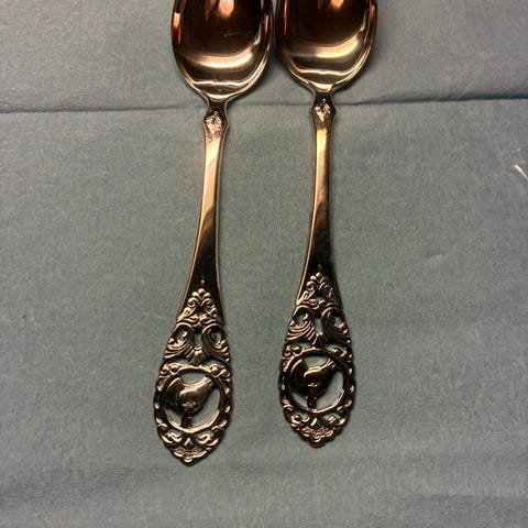 Regner med den er laget i sølvplett da jeg ikke finner noen stempel på den.