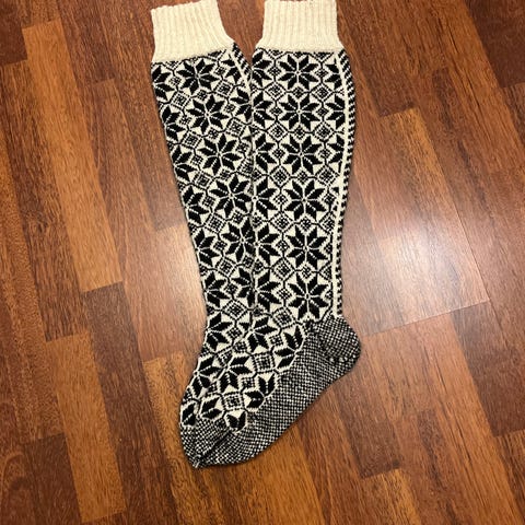 Flotte og dekorative sokkeblokkere i tre, jeg tror de er kjøpt på garnbutikken Fortuna.