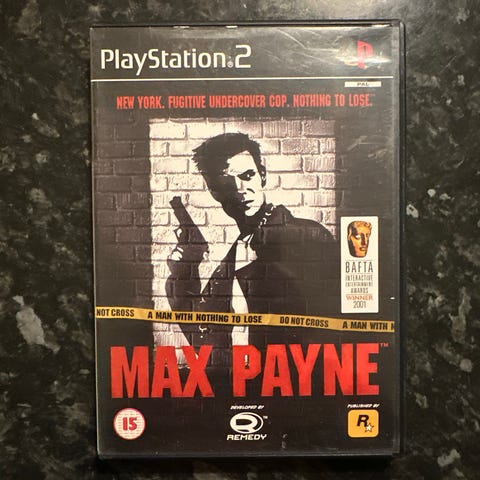 Rockstar Games Max Payne 2 The Fall of Max Payne PlayStation 2 spill. Actionspill i tredjeperson der spilleren følger figuren Max Payne gjennom en historie med film noir-preg. Spillet leveres på DVD-plate i originalt PlayStation 2-cover med omslag og manual synlig på bildene. Egnet for bruk på PlayStation 2-konsoll som støtter dette formatet. Aldersmerking og øvrig informasjon står på coveret.