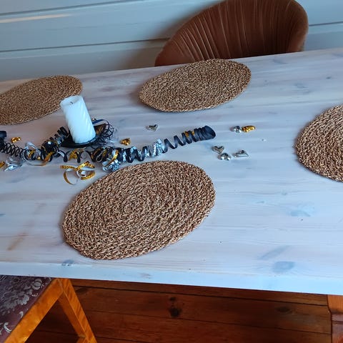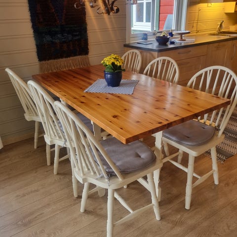 Furubord, pusset og malt bordplate, 200 cm lengde 100 cm bredde.