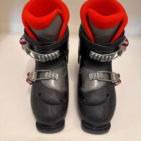 Salomon Performa T2 alpinstøvler for barn i svart med røde detaljer i størrelse 23.0 tilsvarende EU 36-37. Modellen har tre justerbare spenner i plast/metall for god tilpasning rundt fot og legg. Myk, rød innerstøvel gir polstring og komfort. Sålen er tilpasset bruk i alpinbindinger. Egner seg til vanlig alpinkjøring for barn/unge.