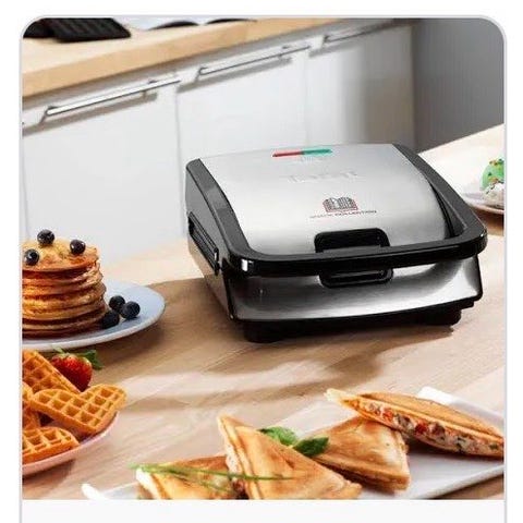 Tefal elektrisk grillplate med rillet stekeflate og integrert varmeelement.