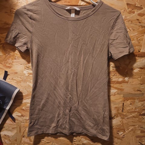 H&M T-skjorte for dame i størrelse M. T-skjorten er grønn og laget hovedsakelig av bomull og modal med innslag av elastan for stretch og komfort. Kortermet modell med rund hals. Passer til hverdagsbruk alene eller under genser eller jakke.