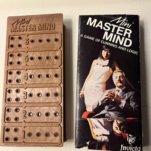 Originalt Mastermind spill fra 1972, fra Invicta. Spillet vant prisen "Årets spill" da det kom ut. Virkelig et spill som setter spillernes skarpsindighet og logiske sans på prøve ved å løse den hemmelige koden!