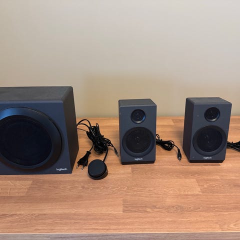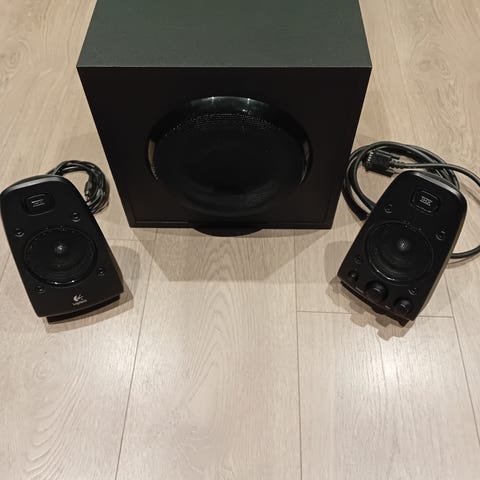 Selger mitt pent brukte høyttaler system da det bare blir stående. Funker fremdeles veldig bra! Skaper en grom og romslig lyd med subwoofer.