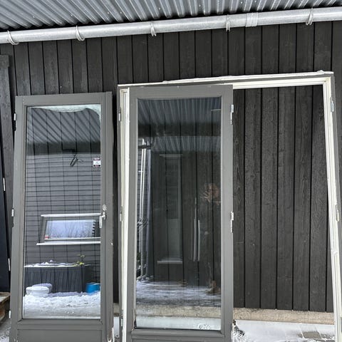 Ca 7 år gammel. Må hentes, og bæres tre etasjer ned, innen lørdag 14/2 kl 11. Diverse taklister kan også hentes. Holder kun av dette om det betales et lite depositum, som betales tilbake ved henting. Ca 73x205 cm dørblad, åpning ca 80x208