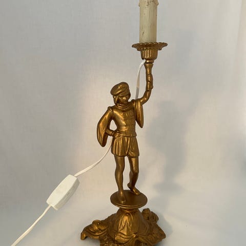 Lampefot i messing fra tidlig 1900 tall. Vekt 1,6 kg. Høyde 37 cm med lampeholder. Sendes i Norge - mottaker betaler porto.