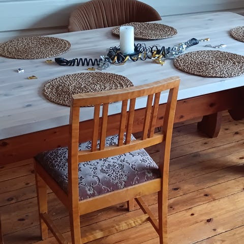 Spisebord heltre furu hvitlasert bordplate