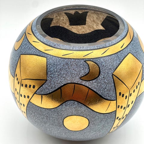 KOSTA BODA ~ NEVADA By UHV - Large and heavy bowl. Ulrica Hydman-Vallien (1938-2018) designed the Nevada series for Kosta Boda in 1994. It consists of art and utility glass with animal motifs in yellow, red, and green colors. The Bowl / Pot is large and impressive and with hand-painted fabulous stylised birds in earthy tones, hopping around the body.