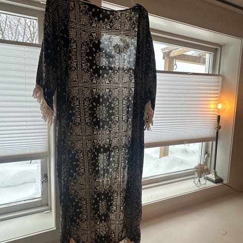 Sommer/ strandkjole fra Vendelawear. Kjempesøt, men jeg bruker den ikke. Veldig mykt og pustende stoff som er kreppaktig. Skikkelig fin blåfarge. Kan og fint brukes av størrelse M da det er stretch under brystet.