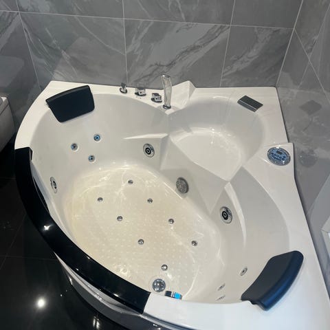 Badekaret kjøpt på Spar Max i 2020. Ekstra utstyr som luftmassasje og varmeelement. Temperatur styringen er ødelagt, vrider sitter bom fas. Kvittering følger med