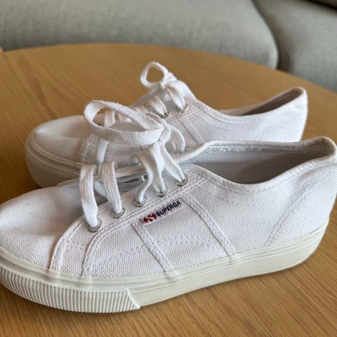 Hvite Tommy Hilfiger sneakers i størrelse 36.
