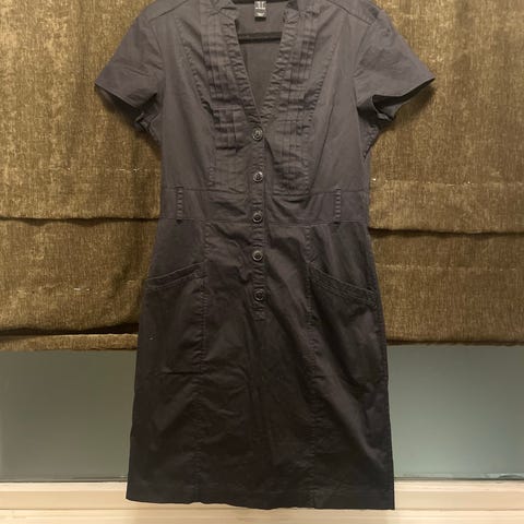 H&M hverdagskjole for dame i størrelse M. Kjolen er grå og laget av bomull. Modellen har kort erm og strikk i midjen, som gir en innsvinget fasong. Egnet som enkel hverdagskjole i mykt og lett materiale.