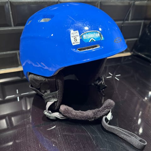 Hjelmen er meget pent brukt og fremstår som ny. Den er trygg, lett og behagelig å ha på med myke fleece-striper inni og den kan enkelt tilpasses til riktig størrelse ved hjelp av et lite dreiehjul plassert bakpå hjelmen.