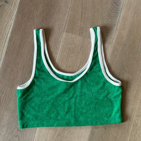 Hvit magetopp med snøring som kan forandre lengden på toppen (se bilde) kjøpt for 200kr.