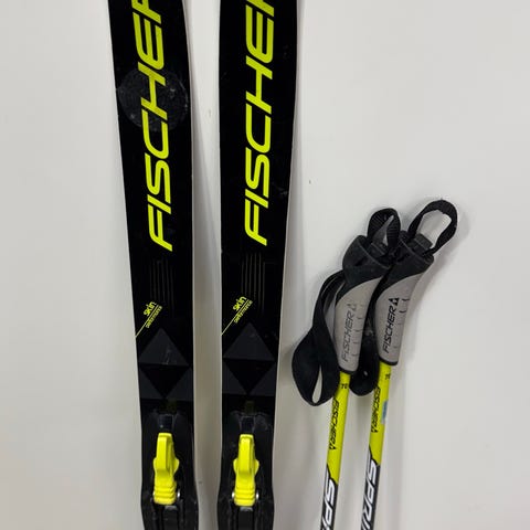 Skiene har noen bruksmerker, men er fortsatt mye ski igjen.