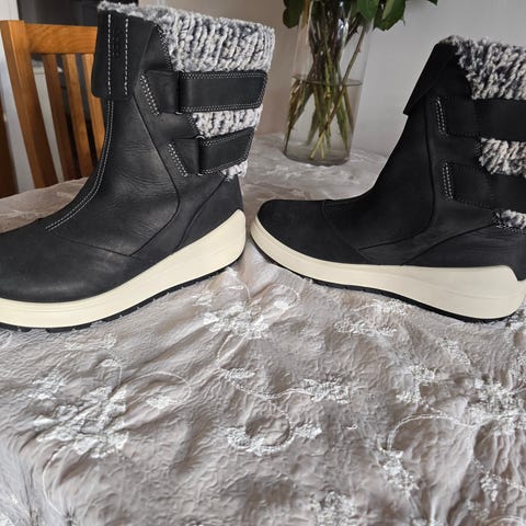 Vanntette boots i sort skinn med varmt for i kunstfiber.