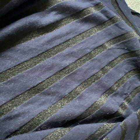 Gudrun Sjödén skjørt i brun stripete bomull for dame i størrelse S. Skjørtet har elastisk linning for komfortabel passform. Lengden er rundt knelang til legg, avhengig av høyde. Materialet er myk bomull med tynne kontraststriper og overlock-søm nederst på kanten. Passer til hverdagsbruk og kan kombineres med ulike topper og gensere.