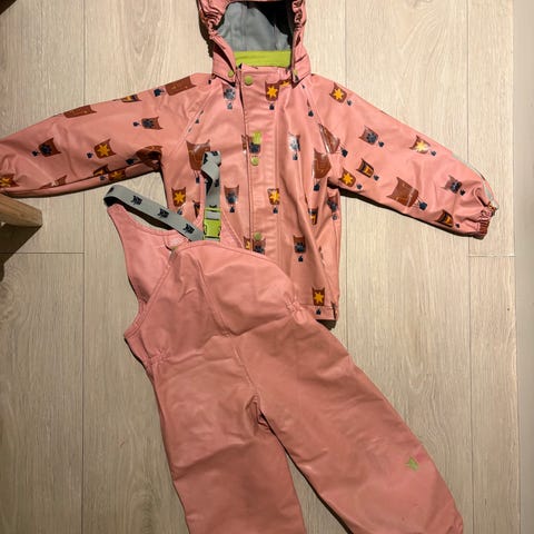 Sett med jakke og selebukse i rosa og Sydvest Barn / Fleecefôr og øreklaffer str 53,54 cm | Vanntett 10.000