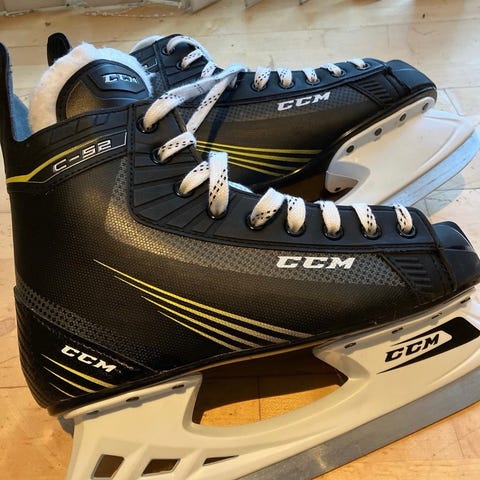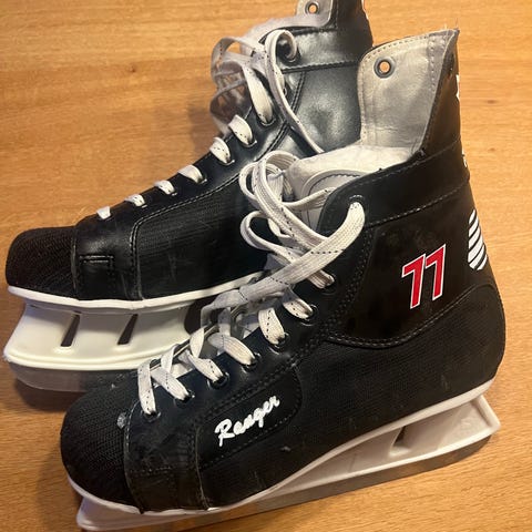 Stadion Toronto ishockeyskøyter i svart og hvit farge. Skøytene har klassisk snøring og plastkappe rundt hæl og ankel for støtte. Understell i plast med stålskinne tilpasset ishockeybruk. Egner seg til bruk på isbaner og ishaller til trening, lek og generell skøyteaktivitet.