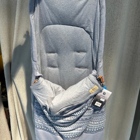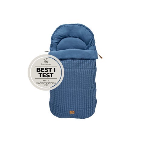 Strikket helårs vognpose i bambusviskose, ull og dun. Nypris: 2599kr.