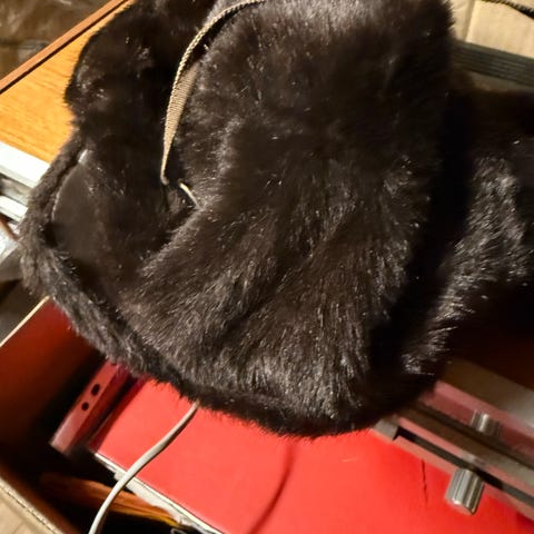 Vinterlue, nærmere bestemt en foret lue med pels/fuskepels på innsiden – ofte kalt pilotlue / trapper hat.