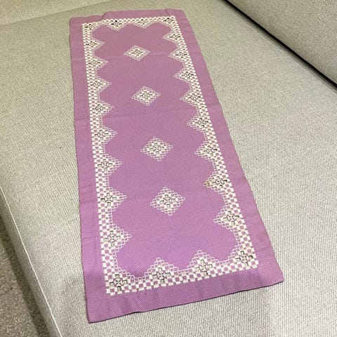 Eldre hardangersøm løper. Nydelig arbeid. Måler 20 cm × 44 cm. Har noen få prikker ( mulig fjernes i vask? ).