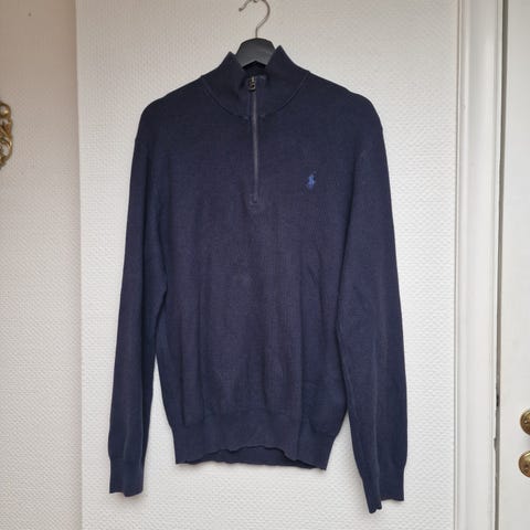 Ralph Lauren Polo genser i størrelse S, laget av bomullsmateriale. Genseren har en mørkeblå farge.