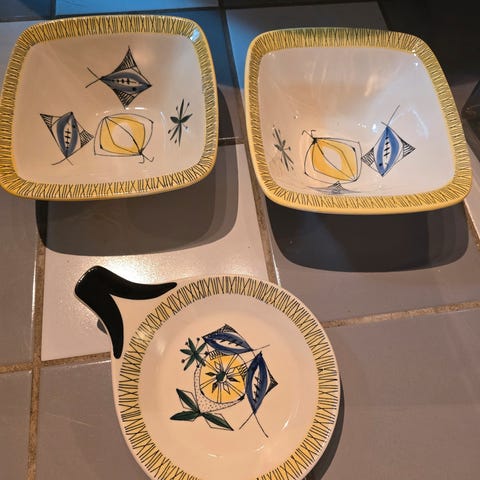 Selger en tallerken/smørsmelter/serveringsfat fra Stavangerflint Flamingo Bambus.