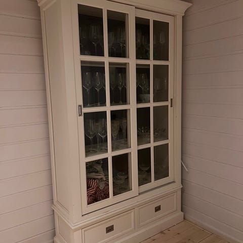Vakkert vinskap i tidløst design med plass til både vinflasker og vinglass