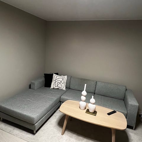Sofaen er pent brukt og fremstår som hel og funksjonell. Puter og trekk holder seg godt, og sofaen gir et ryddig og elegant helhetsinntrykk i rommet.