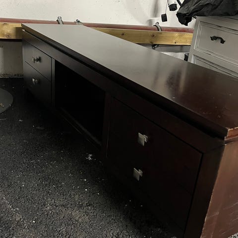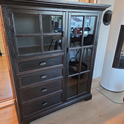 Liten skjenk gis bort. Skap og åpne hyller.