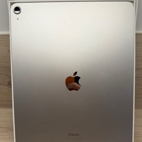 Apple iPad Air nettbrett med 128 GB lagringskapasitet. Nettbrettet har berøringsskjerm og er egnet til bruk for blant annet surfing, streaming, skole- og kontorarbeid. Enheten kan brukes sammen med kompatibelt tastatur og etui, som vist på bildene, for mer komfortabel skriving og beskyttelse av nettbrettet. Passer både til privat og profesjonell bruk der det er behov for et lett og bærbart nettbrett med god lagringsplass.