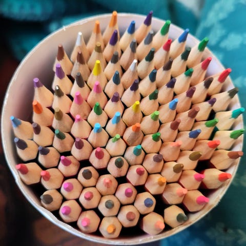 Metallskrinet beskytter blyantene under oppbevaring og transport og gjør det enkelt å holde oversikt over fargene i settet.
