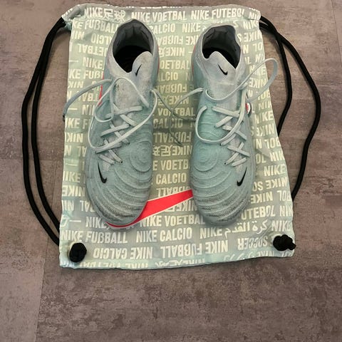Nike Phantom GX Elite AG-Pro Shadow fotballsko i størrelse EU 41/US 8. Modellen er laget for spill på kunstgress (AG) med knotter tilpasset kunstgressunderlag. Skoene er i svart med grønne Nike-detaljer. Overdelen har strukturert mønster for bedre ballkontroll, og lissesystemet er asymmetrisk for større sparkeflate. Passer til fotballspillere som ønsker en lett og tettsittende sko til bruk på kunstgressbaner.