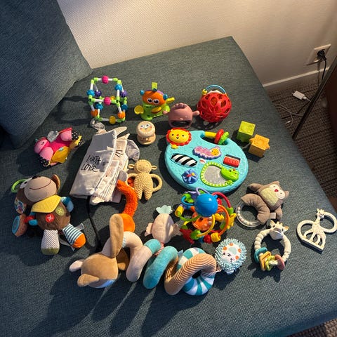 Diverse leker til baby gis bort