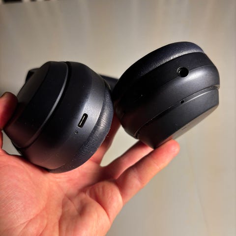 Sony trådløse over-ear hodetelefoner i beige farge. Lukkede øreklokker som omslutter ørene for bedre isolasjon av lyd fra omgivelsene.
