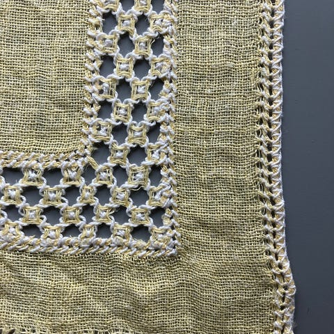 håndbrodert - håndarbeid - håndlaget - duk - lin - gul - vintage - retro - sommerlig - vårlig - påske