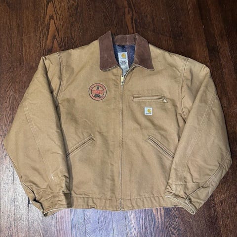 Klassisk workwear-modell med glidelås foran, brystlomme med zip og den ikoniske Carhartt-patchen på brystet. Jakken har en kort, boxy passform som gjør den perfekt både til hverdags og streetwear-looks.