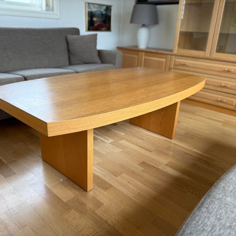 Ovalt stuebord med hylle under. Solid bord i god stand