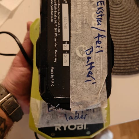 Ryobi rdd18c drill uten batteri eller lader. Pris med 2 ah batteri og lader er 850 kr