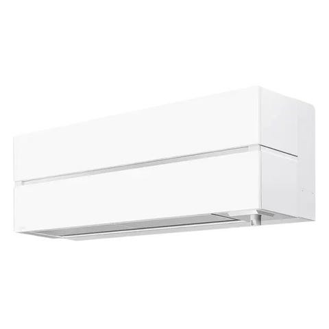 Mitsubishi Electric varmepumpe veggmodell i hvit utførelse. Innedel for montering på vegg, med luftutblås i front. Leveres med fjernkontroll for justering av temperatur og innstillinger. Egnet for oppvarming og kjøling av innendørs rom, for eksempel stue eller oppholdsrom.