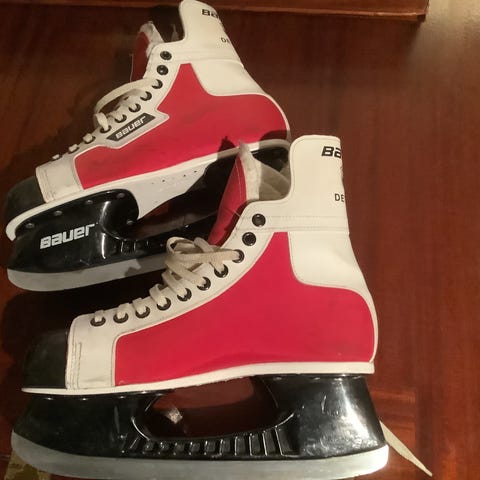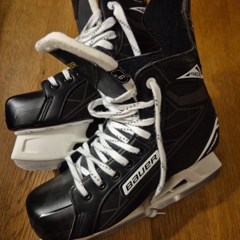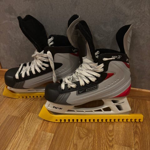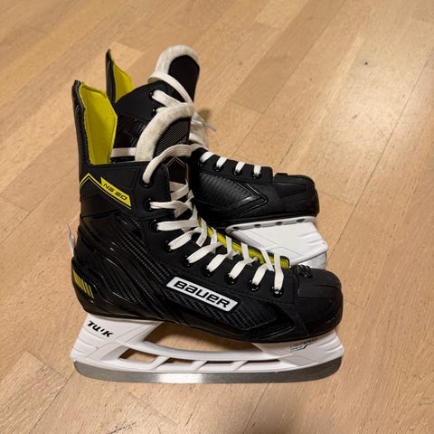 Bauer ishockeyskøyter i størrelse 43 (EUR). Farge svart med lyse detaljer. Skøytene er beregnet for ishockeybruk og har tradisjonell snøring og TUUK-skøytestål. Egnet for bruk på isbaner til trening eller fritidsspill i ishockey.