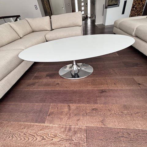 Bolia New Mood Coffee Table. Flott utførelse I dempet lys grønn farge, med beisede ben. Bordplaten er helt uten riper eller skader. Passer perfekt ved siden av godstolen 🙂