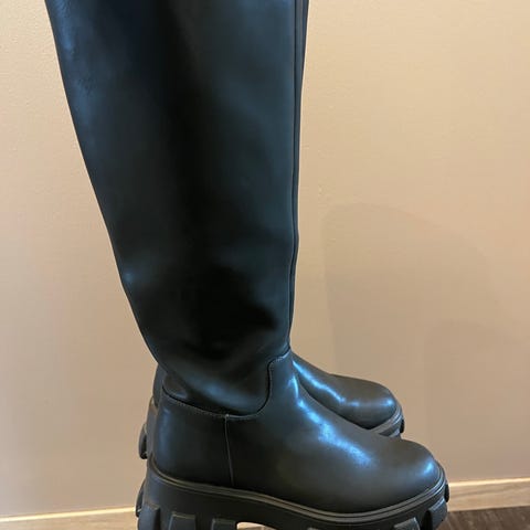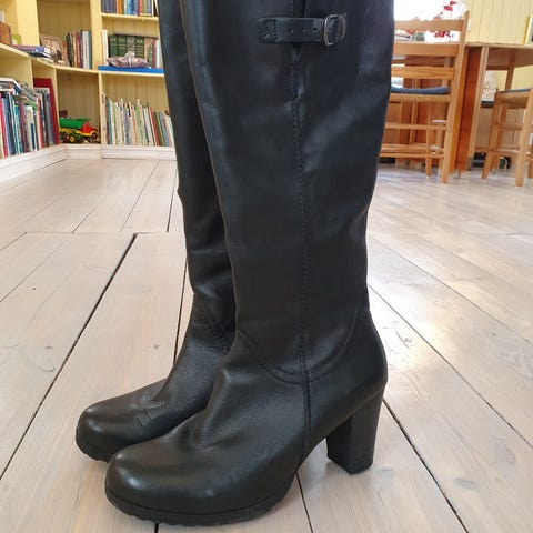 Svarte støvletter i str 38 med glidelåslukking i siden.