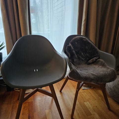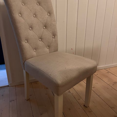 Stilfulle og komfortable spisebordstoler som gir både sittekomfort og et elegant uttrykk rundt bordet. Slitesterkt materiale og klassisk design gjør dem perfekte til både hverdag og fest. Selges som sett (6stk), godt brukt. Dansk design.