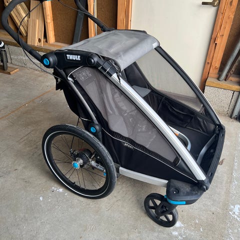 Thule barnevogn/joggevogn i svart. Vognen har ett sete med polstret fempunktssele og justerbar rygg. Store luftfylte hjul bak gir stabilitet og god trillekomfort. Håndtaket er polstret for bedre grep, og det er oppbevaringslomme og rom under setet. Passer til transport av ett barn ved trilleturer og jogging, avhengig av hvilke tilleggsdeler som brukes og hva produsenten anbefaler.