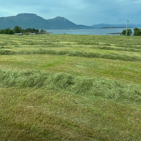 Denne er kun brukt to ganger på en liten jordflekk siden den var ny. Så til tross for den er gammel er det mye igjen. Eneste som har stått seg ihjel var sylinderen for å slå den sammen. Men med lasteapparat så kan den løftes og feste "vingene" sammen med en stropp for å frakte den. 3 meter brei +.